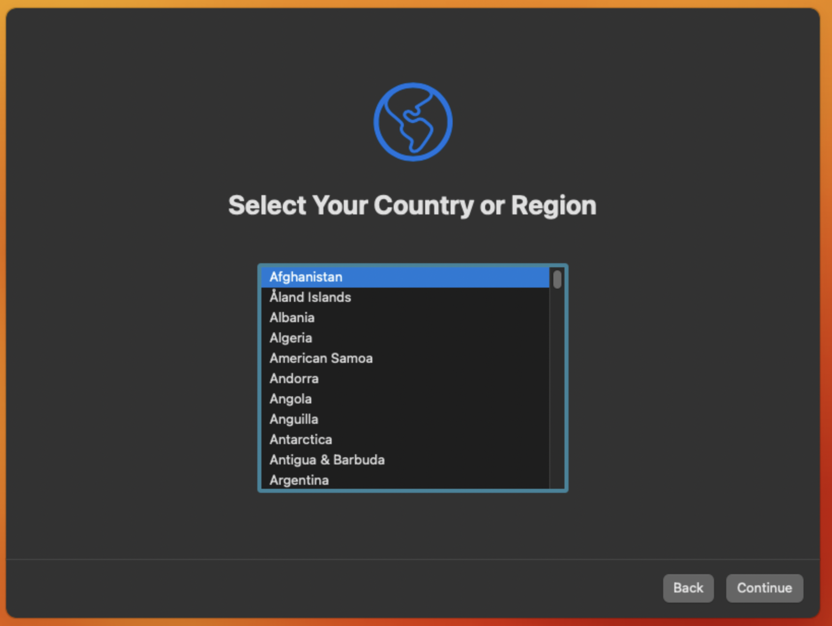Finally, your VM should boot into the MacOS user setup screen and allow you to create your account.